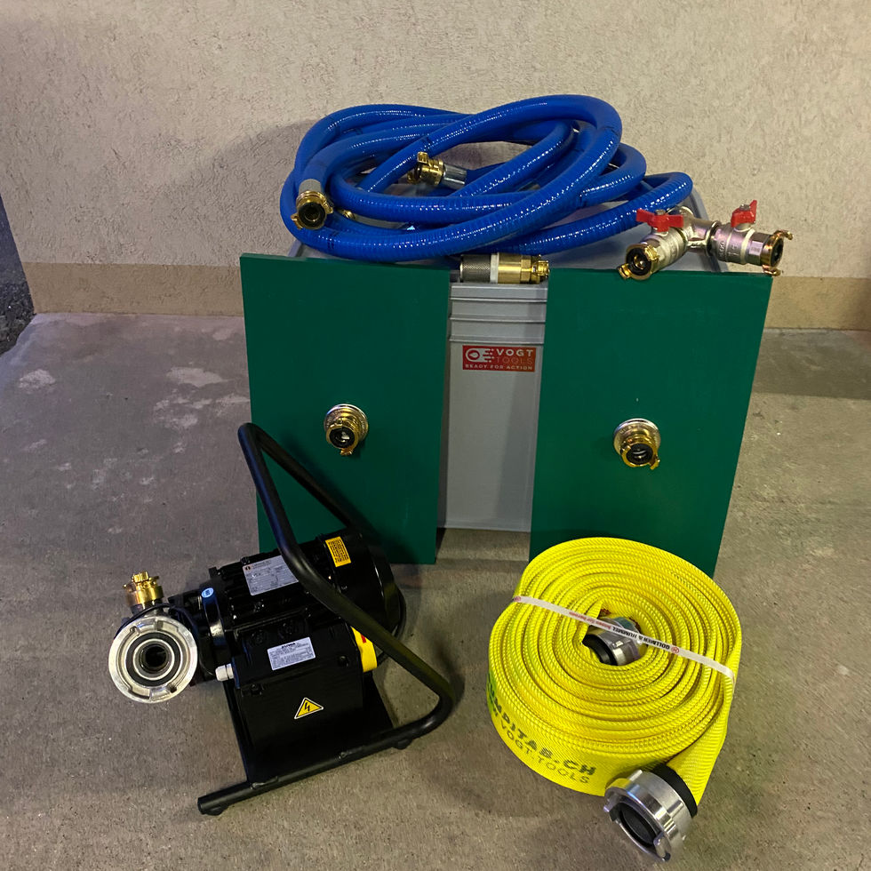 Für den Hochwassereinsatz bieten wir ein sehr leistungfähiges Flachsaugset als Spezialanfertigung. Dieses wurde speziell für die Anforderungen von Feuerwehr, Firmen und Notfallorganisationen konzipiert.